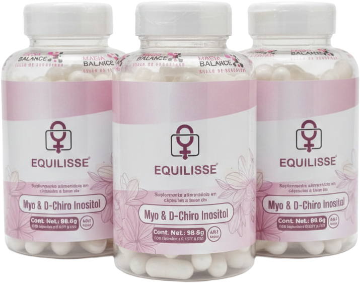 Equilisse es un suplemento alimenticio premium, desarrollado con una combinación de Myo-Inositol y D-Chiro Inositol en su proporción científicamente estudiada de 40:1, considerada la más efectiva en el apoyo a mujeres con Síndrome de Ovario Poliquístico (SOP).